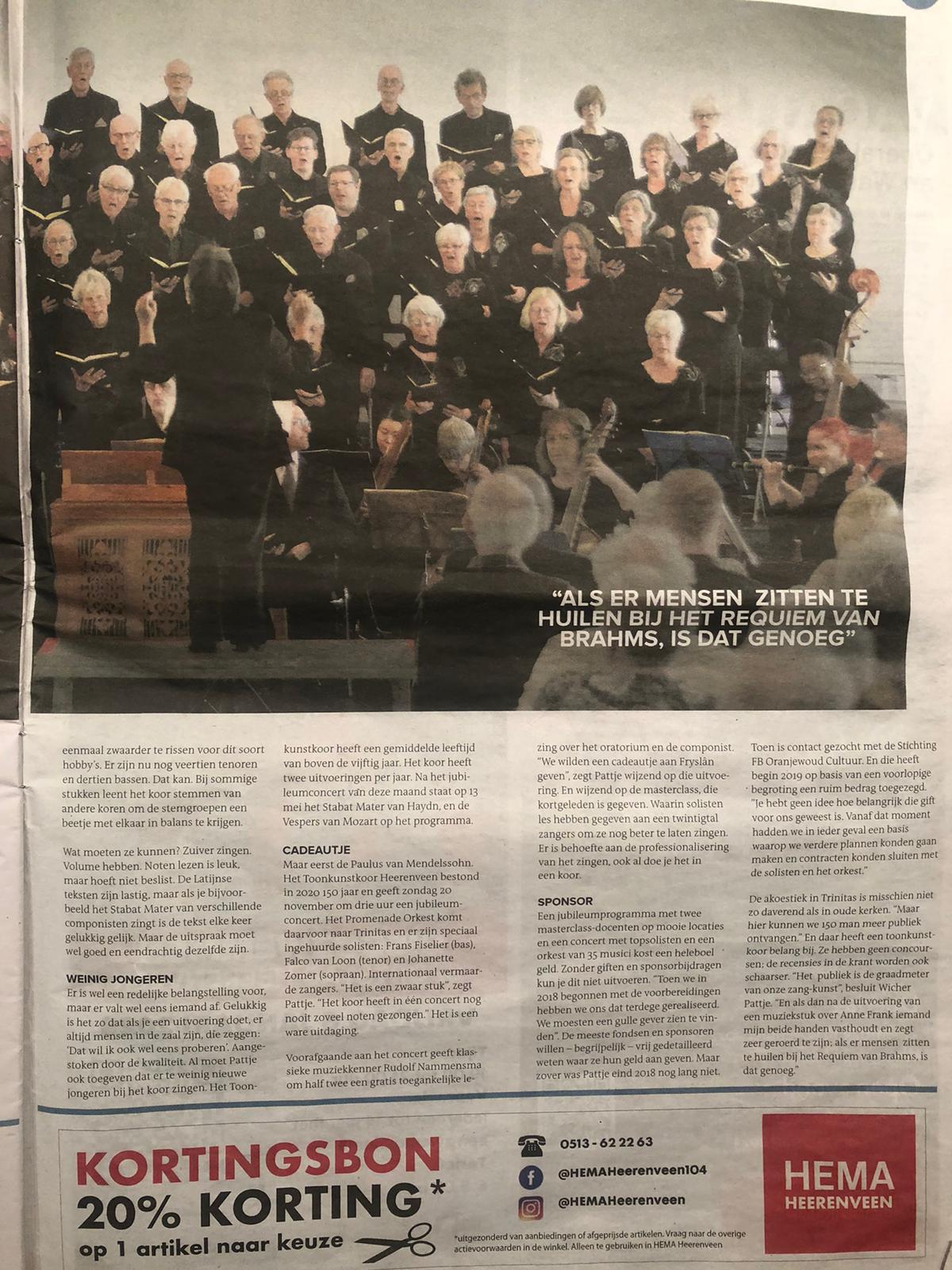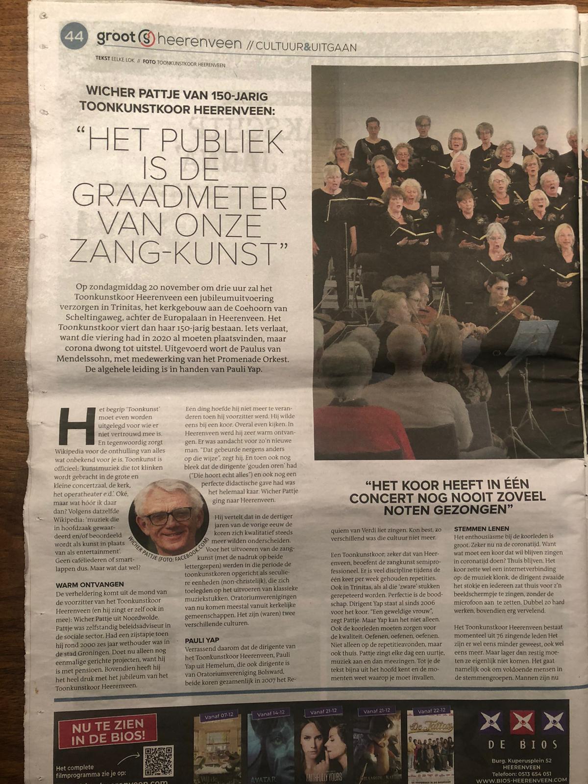 In de week voor het Jubileumconcert verscheen er in Groot Heerenveen een interview met de voorzitter